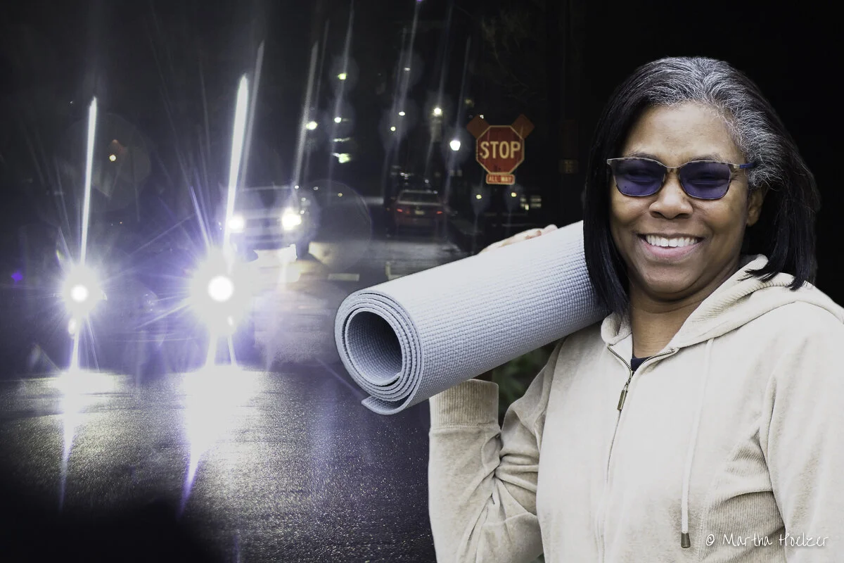 Driving was particularly difficult. Things she had taken for granted were suddenly difficult to handle. You’re steering, you have to remember to put your foot on the gas and move it over to the brake. You need to stay in your lane. There’s a dog over here on your left. You’re approaching a cross walk where are people stepping out into the road to cross. There’s other cars. There are headlights. There are taillights. How fast am I going? What street am I on? Where am I headed? The radio has to be off so I can concentrate.